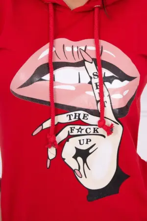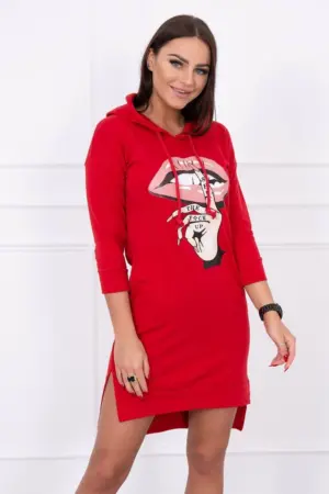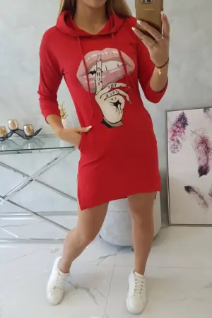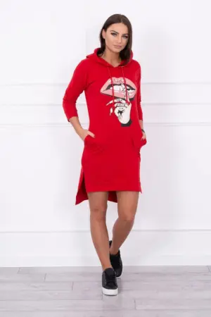 We present you a comfortable dress. Hooded dress, has a fashionable colorful print. Dress with a longer back. Very interesting proposition for all ladies. The dress is made of high quality material. The size is universal and will be suitable for ladies wearing sizes S, M or L.