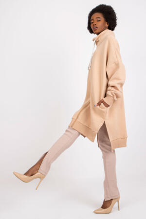 Γυναικείο φούτερ με εκτεταμένο κόψιμο και κλείσιμο με φερμουάρ. Μπλούζα με μακριά μανίκια και ψηλό γιακά. Πλαϊνές σχισμές, τσέπες στις πλαϊνές ραφές.