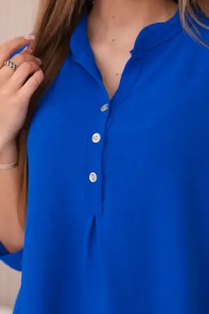 Discover extraordinary elegance and comfort in the presented blouse with a longer back, button neckline and rolled-up sleeves, this blouse not only looks exceptionally stylish, but also provides unrivaled functionality. Feel confident and elegant in a blouse that will emphasize your unique style. Thanks to the longer back, you will create subtle and fashionably irregular proportions, and the button neckline will allow you to adjust the blouse to your preferences. Rolled-up sleeves add lightness and a casual character to the blouse, perfect for various occasions. Whether it’s a business meeting or a relaxing coffee with friends, our blouse will provide you with comfort and style in one. Don’t miss the opportunity to add this unique blouse to your wardrobe! Discover elegance, comfort and functionality in one, and emphasize your unique style today. The size is universal and will be suitable for women wearing size S, M or L.