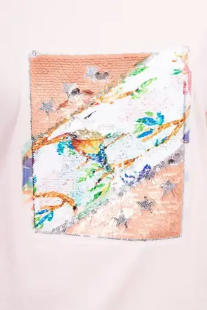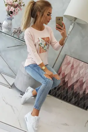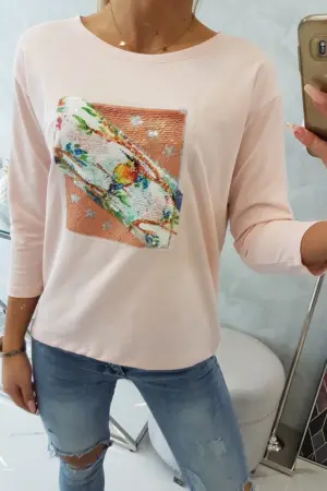 We present you a fashionable blouse. The blouse has sewn-on graphics at the front made of sequins. An ideal proposition for every day. The blouse is made of high quality material. The size is universal and will be suitable for women wearing sizes M, L or XL.