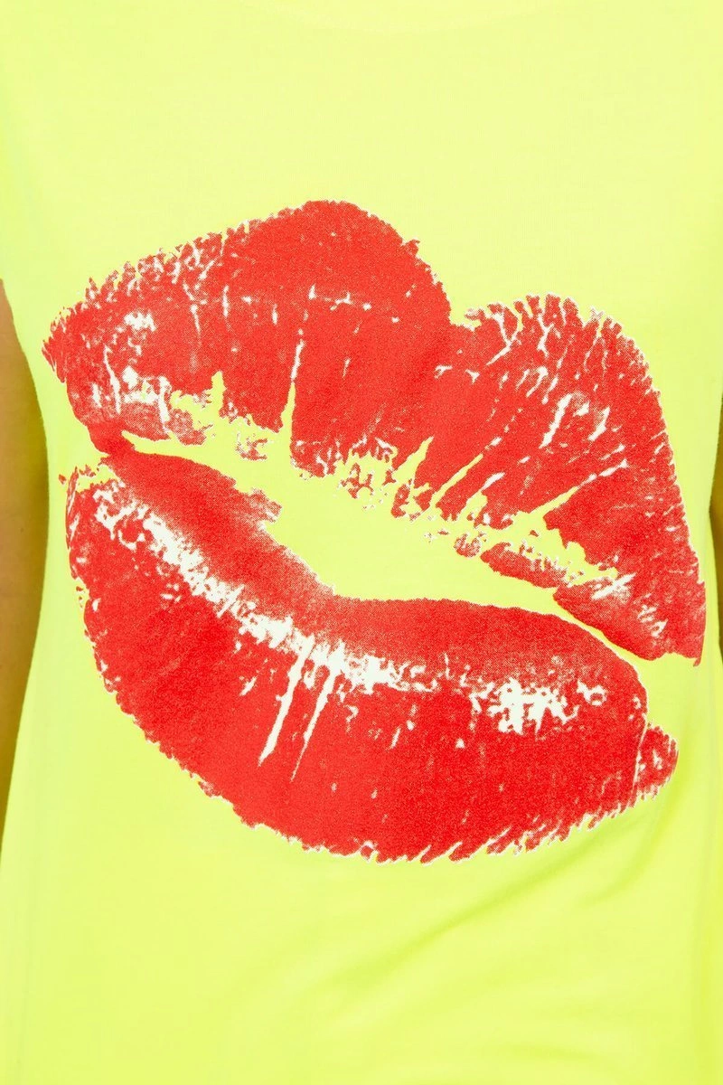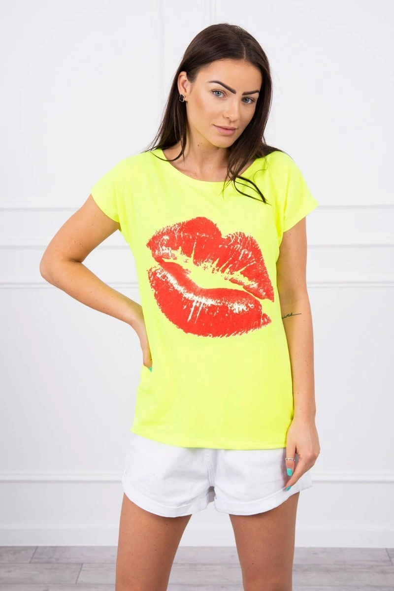 We present you a fashionable blouse. Blouse with lips print Blouse with short sleeves. Cool graphics on a T-shirt. A perfect blouse for shorts. The blouse is made of high quality material. The size is universal and will be suitable for ladies wearing sizes S, M or L.