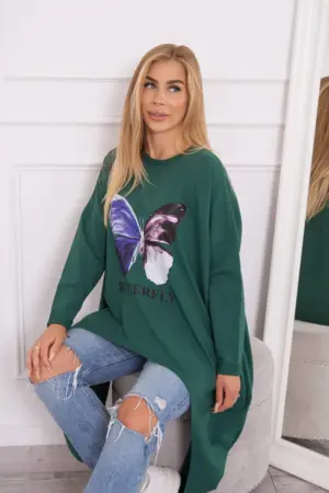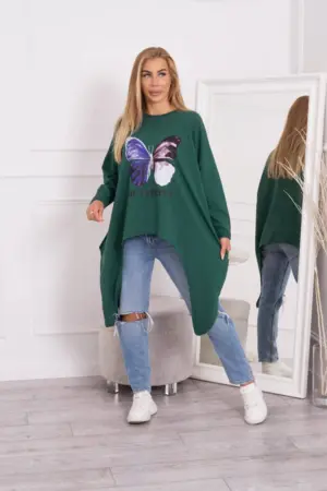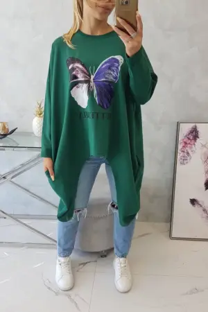 We present you a fashionable blouse. Butterfly print blouse. Blouse with longer sides. The blouse is made of high quality material. The size is universal and will be suitable for ladies wearing sizes M, L or XL.