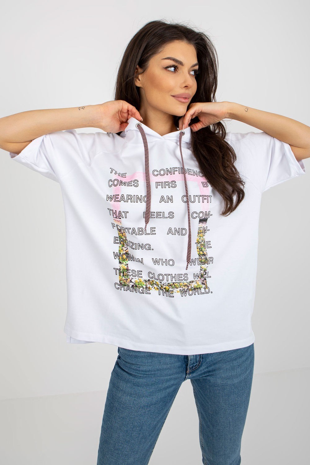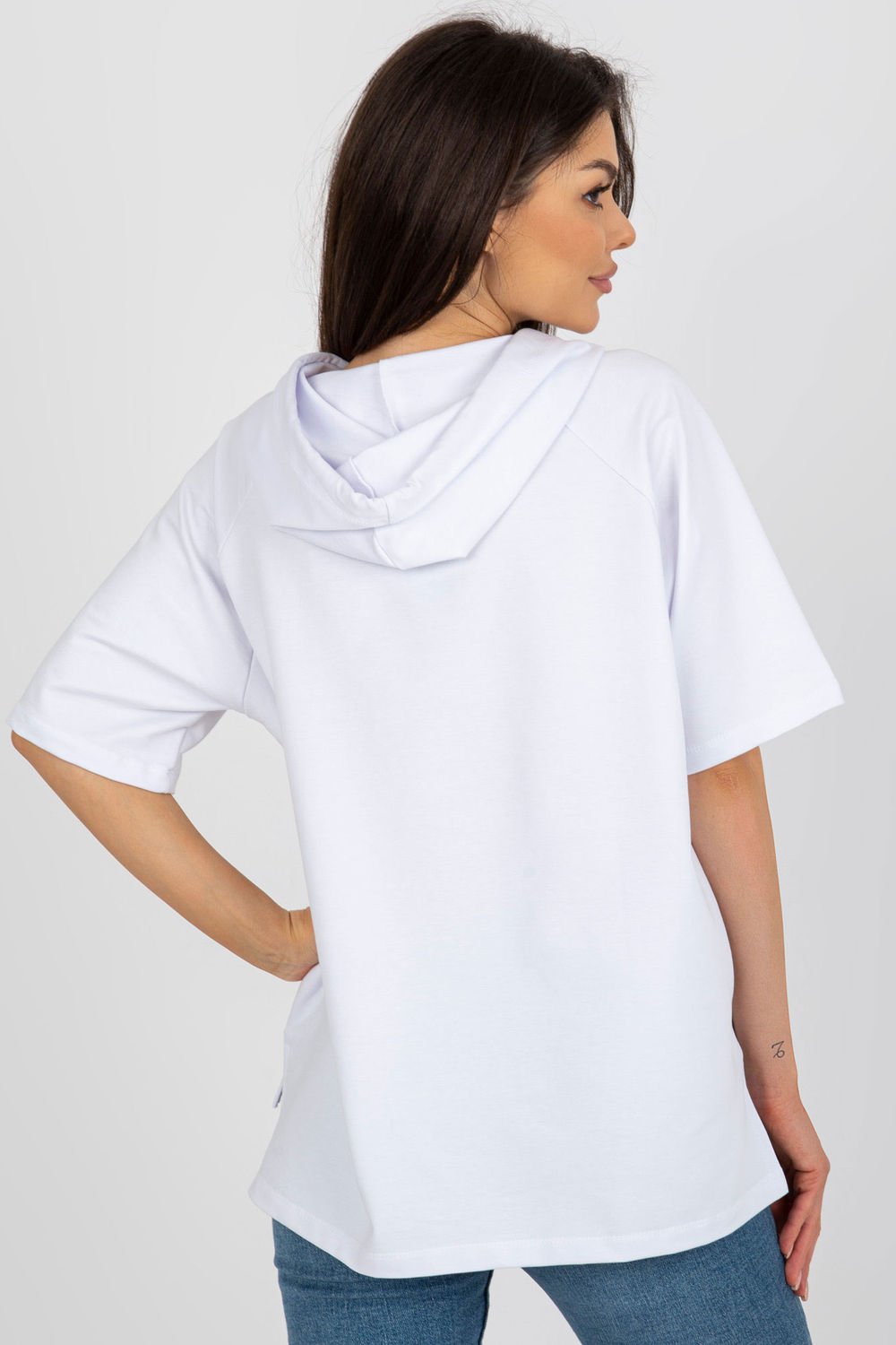 Βαμβακερή μπλούζα με κοντά μανίκια και κουκούλα. Διακοσμητικό τύπωμα στο μπροστινό μέρος. Τσέπες στα πλάγια.