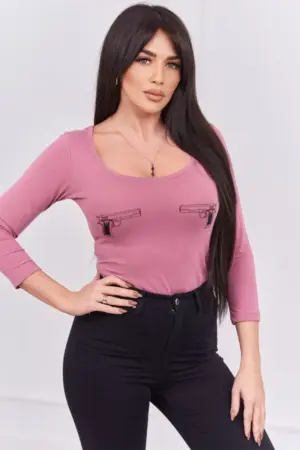 We present you a body blouse. The blouse has an imprint. The blouse is made of high quality material. Very fashionable and stylish. The size is universal and will be suitable for ladies wearing sizes XS, S and M.