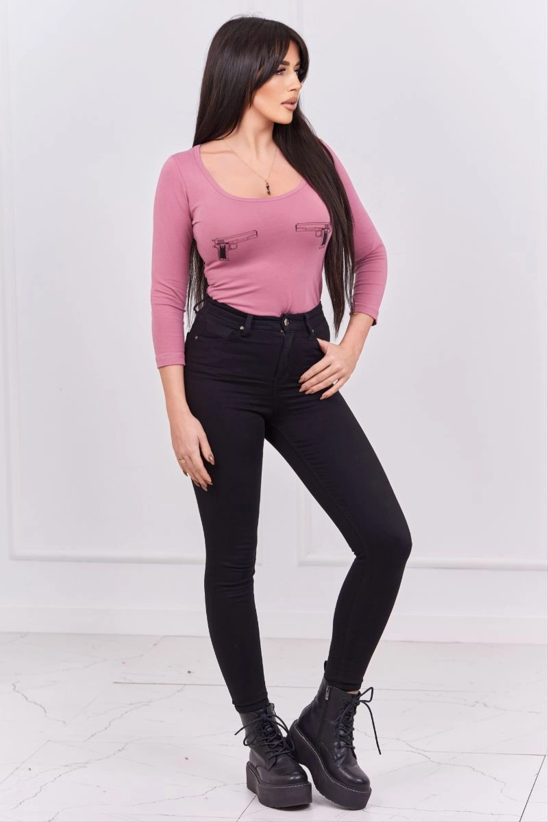 We present you a body blouse. The blouse has an imprint. The blouse is made of high quality material. Very fashionable and stylish. The size is universal and will be suitable for ladies wearing sizes XS, S and M.