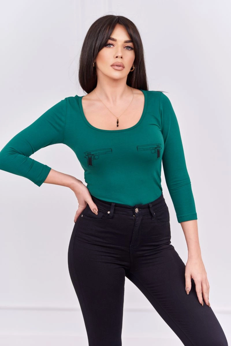 We present you a body blouse. The blouse has an imprint. The blouse is made of high quality material. Very fashionable and stylish. The size is universal and will be suitable for ladies wearing sizes XS, S and M.