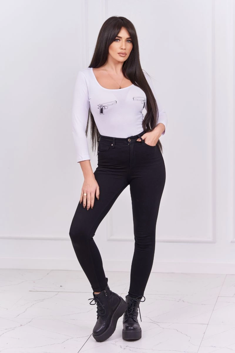 We present you a body blouse. The blouse has an imprint. The blouse is made of high quality material. Very fashionable and stylish. The size is universal and will be suitable for ladies wearing sizes XS, S and M.