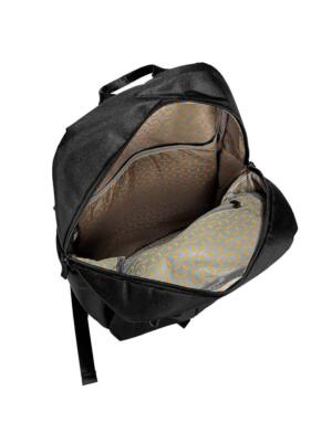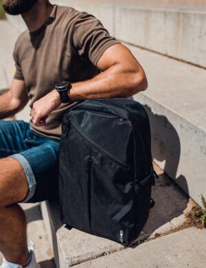 A simple black backpack that you can carry into town or on a trip with your mates. It’s fully loaded. An internal laptop pocket is a given, but you’ll be pleased to find plenty of smaller pockets for accessories or other essentials that need a place of their own and you’ll be able to access them in no time.