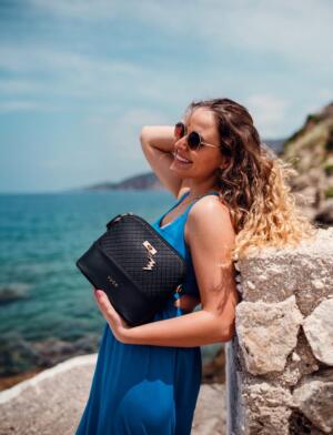 Cara is a rare diamond in our portfolio. It is a bestseller from a collection for which the diamond shape is central. The elegant play of blind-printing, which features prominently on the surface of the bag itself, may remind you of it. In addition to its conical shape with a solid bottom, it also prides itself on the material from which it is made. It’s matte, roughly textured, but practical. Dirt or scuff marks are hardly visible. It’s simply so good that our other pieces are copying it.