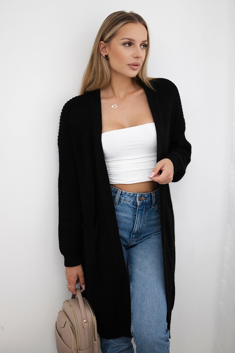 A cardigan with pockets is a practical and stylish wardrobe item that combines comfort and functionality. Made of soft, high-quality material, it provides warmth and comfort all day long. The pockets add practicality to the cardigan, perfect for storing small items or simply warming your hands. Its universal design makes it a perfect match for both casual styles and more elegant outfits. A cardigan with pockets is a must-have for every woman who values a fashionable look combined with comfort and practicality. The size is universal and will be suitable for women wearing size S, M or L.