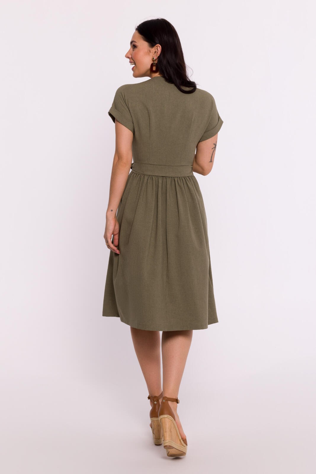 Το υφασμάτινο φόρεμα είναι ένα πραγματικό διαμάντι του πολωνικού σχεδιασμού, που συνδυάζει την κομψότητα με τη διακριτική εκλέπτυνση. Το μοντέλο με φάκελο δείχνει εξαιρετικά κομψό, τονίζοντας τη θηλυκή σιλουέτα και εντυπωσιάζοντας με την πρωτοτυπία του. Τα κοντά μανίκια με μανσέτες προσθέτουν φινέτσα στο φόρεμα, δημιουργώντας μια αρμονική αντίθεση με το μακρύ, φουσκωτό κάτω μέρος. Το φόρεμα κόβεται στη μέση, γεγονός που τονίζει τη θηλυκή γραμμή και προσδίδει ελαφρότητα στη δημιουργία. Η πτυχή γύρω από τη μέση και η ζώνη που δένεται γύρω από τη μέση προσθέτουν μια μοναδική πινελιά στο φόρεμα, ενώ σας επιτρέπουν να προσαρμόσετε την εφαρμογή του. Η έλλειψη φόδρας καθιστά το φόρεμα άνετο στο δέρμα και ιδανικό για τις πιο ζεστές ημέρες. Η προβολή και η παραγωγή αυτού του μοναδικού ενδύματος πραγματοποιείται στην Πολωνία, αποδεικνύοντας τη δέσμευση στη βιομηχανία μόδας της χώρας. Αυτό το φόρεμα δεν αποτελεί μόνο μια επιλογή μόδας, αλλά και μια έκφραση υπερηφάνειας για το πολωνικό σχέδιο, συνδυάζοντας το κλασικό και το μοντέρνο.