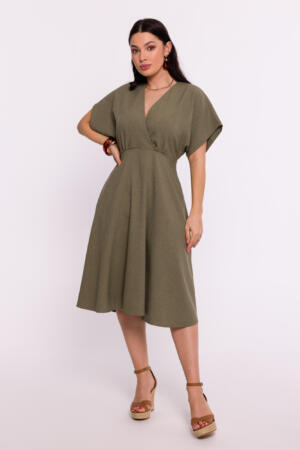 Το υφασμάτινο φόρεμα αποτελεί έκφραση της πολωνικής σχεδιαστικής δεξιοτεχνίας, συνδυάζοντας τον μοντερνισμό με την εξαιρετική φόρμα. Το μοντέλο με λαιμόκοψη φάκελο φαίνεται εξαιρετικά αισθησιακό, τονίζοντας την κομψότητα και τη λεπτότητα κάθε χρήστη. Τα κοντά μανίκια νυχτερίδα προσθέτουν ελαφρότητα στο φόρεμα, δίνοντάς του έναν μοναδικό, μοντέρνο χαρακτήρα. Το κάτω μέρος του φορέματος, φουσκωτό και ελαφρύ, καθιστά αυτή τη δημιουργία ιδανική για διάφορες περιστάσεις, δημιουργώντας εντυπωσιακή κίνηση σε κάθε βήμα. Το κρυφό φερμουάρ που είναι τοποθετημένο στο πλάι προσδίδει κομψότητα στο φόρεμα, ενώ παράλληλα διευκολύνει το ντύσιμό του. Η έλλειψη φόδρας καθιστά το φόρεμα άνετο στο δέρμα και ιδανικό για τις πιο ζεστές ημέρες. Ο σχεδιασμός και η παραγωγή αυτού του μοναδικού ενδύματος πραγματοποιείται στην Πολωνία, αναδεικνύοντας τη δέσμευση στη βιομηχανία μόδας της χώρας. Αυτό το φόρεμα δεν είναι μόνο μια επιλογή μόδας, αλλά και μια έκφραση υπερηφάνειας για το πολωνικό σχέδιο, συνδυάζοντας τον εκσυγχρονισμό, την κομψότητα και την υψηλή ποιότητα κατασκευής.
