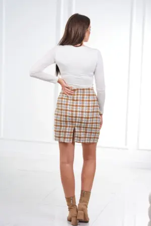 We present you a fashionable skirt. The skirt has a check pattern. Skirt without pockets. Right side zip fastening. The skirt also has a lining. An interesting proposition for all ladies. The skirt is made of high quality material. The skirt is available in sizes S, M, L.