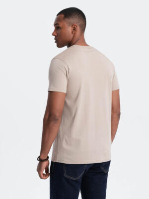 The T-shirt with a classic cut will be a great versatile base for everyday ensembles. This men’s cotton T-shirt is made of 100% combed cotton, and the high quality of the material can be clearly felt. The nice-to-touch fabric gives the T-shirt a softness, evoking a second-skin feeling. It fits well on the body, providing comfort throughout the day