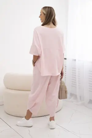 The Italian set is a combination of elegance and comfort that perfectly suits many occasions. This fabric is not only soft and pleasant to the touch, but also looks beautiful. A blouse is a perfect piece of clothing both every day and for special occasions. You can wear it alone or combine it with another piece of clothing, creating an extremely stylish outfit. Trousers are the perfect complement to the set. Their loose cut allows freedom of movement, which makes them not only stylish, but also very comfortable. When choosing trousers, you choose comfort and elegance in one. The Italian set is an excellent choice for those who value high quality and unique style. Whether you’re going to a meeting with friends, to work or for an evening out, this set will surely make you stand out from the crowd. The size is universal and fits women wearing size S, M or L.