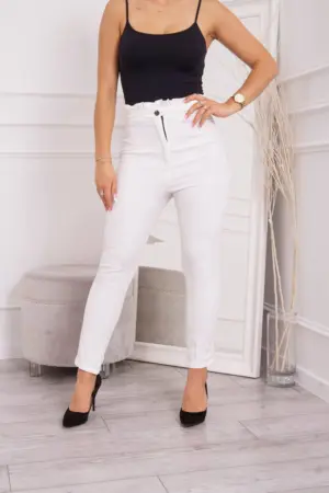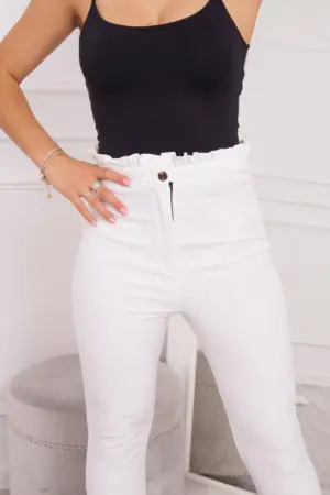 We present you fashionable pants. Creased trousers. Pants fastened with a button. Perfect for work and everyday use. Pants are made of high quality material. Available sizes: S, M, L.?The sizing is off by one size. Exact dimensions in the table below.