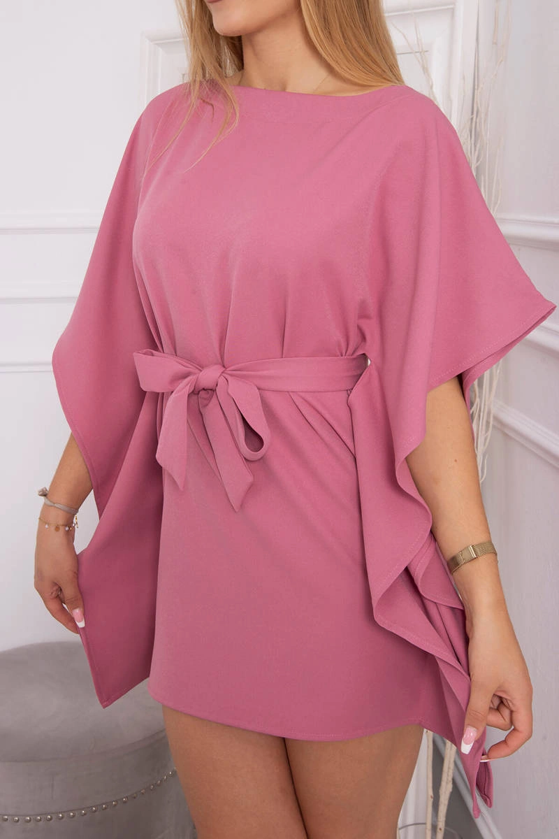 We present you a fashionable dress. The dress has bat sleeves. Dress tied at the waist. An ideal position every day. The dress is made of high quality material. The size is universal and will be suitable for ladies wearing sizes S, M or L.