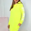 We present you a fashionable dress. Dress with a hood and an inscription on the sleeve off white. The dress has pockets. The dress is made of high quality material. The size is universal and will be suitable for ladies wearing sizes S, M or L.