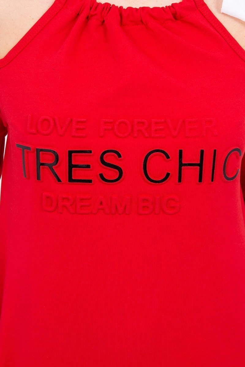 We present you a comfortable dress with the inscription Tres Chic.