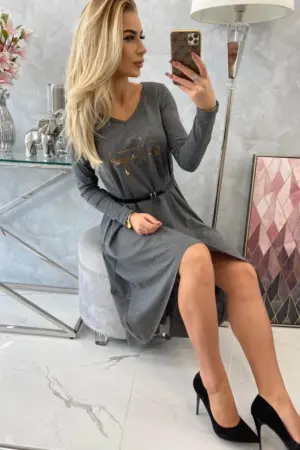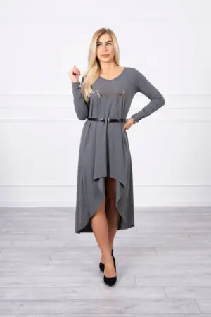We present you a comfortable dress with a decorative belt and a fashionable inscription on the front. The dress has a longer back. The dress is made of high quality material. A very interesting proposition for all ladies. The size is universal and will be suitable for ladies wearing sizes S, M or L.