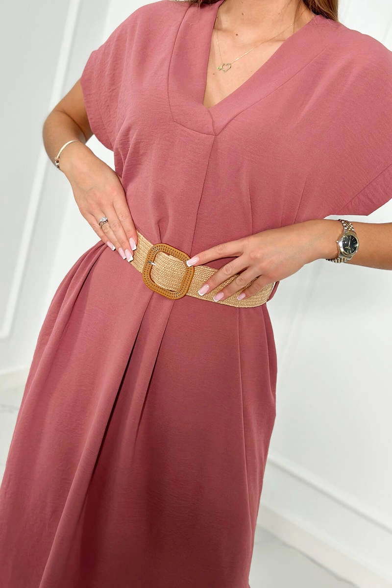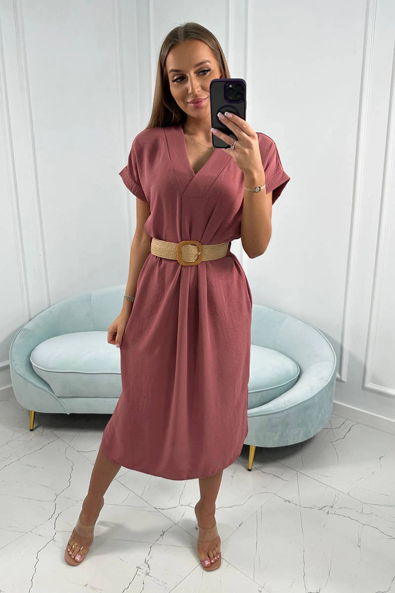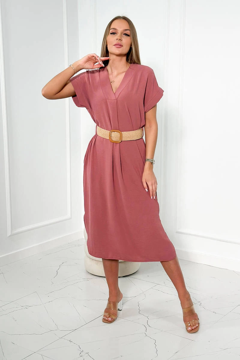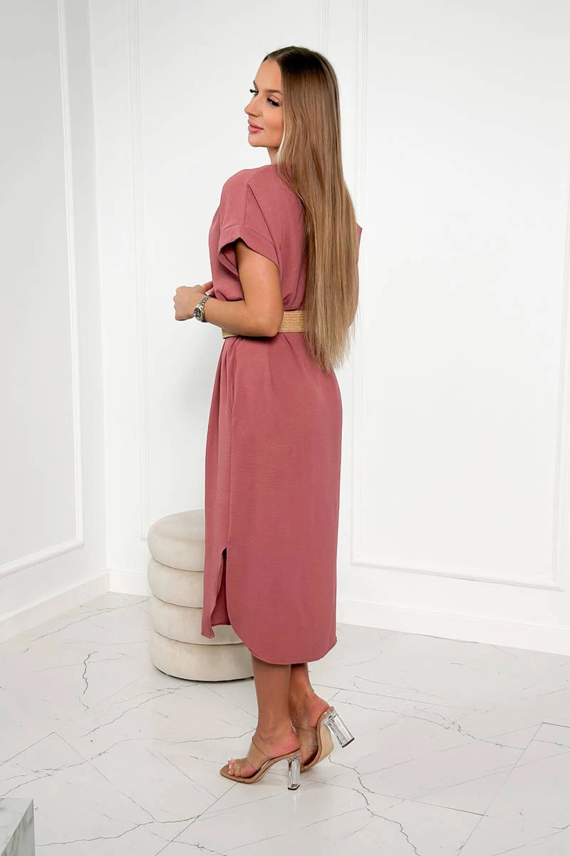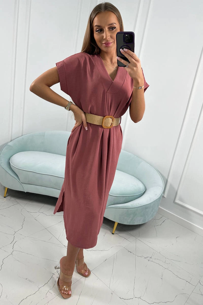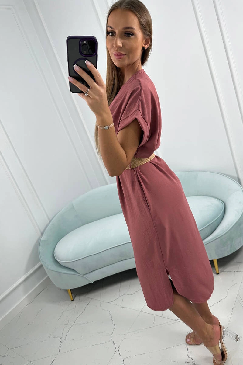 We present you a comfortable dress with a decorative belt. The dress has slits on the sides at the bottom. The dress is made of high quality material. A very interesting proposition for all ladies. The size is universal and will be suitable for ladies wearing size S, M or L.