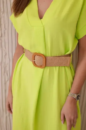 We present you a comfortable dress with a decorative belt. The dress has slits on the sides at the bottom. The dress is made of high quality material. A very interesting proposition for all ladies. The size is universal and will be suitable for ladies wearing size S, M or L.