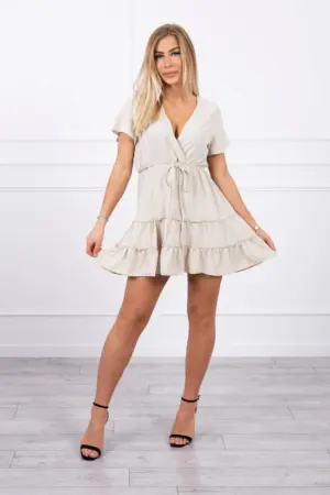 We present you a fashionable dress. Dress with a V-shaped neckline. . The dress has a cut-off at the waist with a tightening elastic band. Slightly flared dress. Made of airy material. The universal cut will be perfect for every figure. Perfect for everyday use, for work and evening out with friends. The dress is made of high quality material. The size is universal and will be suitable for ladies wearing sizes S, M or L.