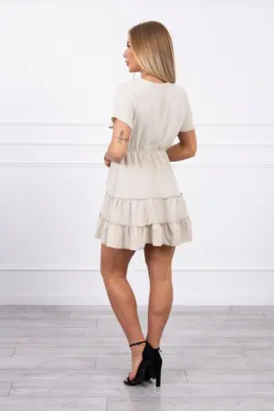We present you a fashionable dress. Dress with a V-shaped neckline. . The dress has a cut-off at the waist with a tightening elastic band. Slightly flared dress. Made of airy material. The universal cut will be perfect for every figure. Perfect for everyday use, for work and evening out with friends. The dress is made of high quality material. The size is universal and will be suitable for ladies wearing sizes S, M or L.