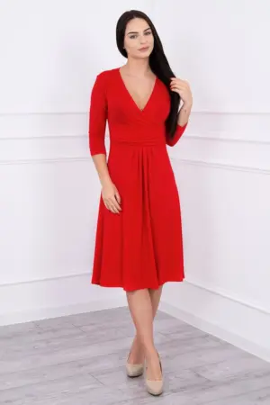 We present you a dress with a cut-out under the bust with a 3/4 sleeve.