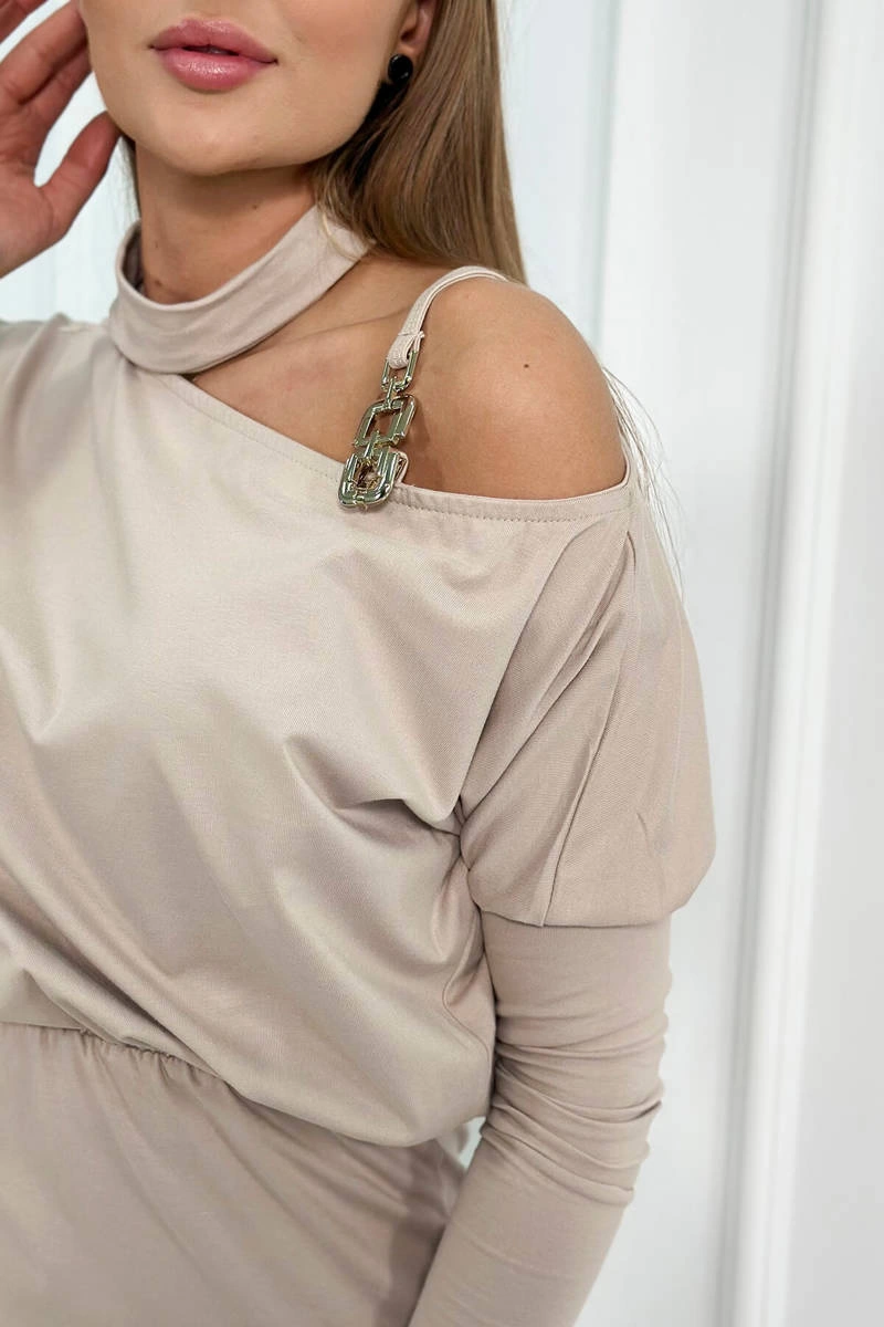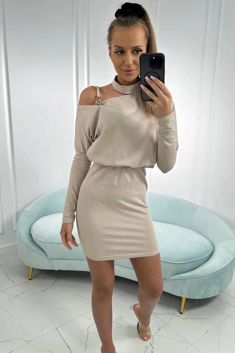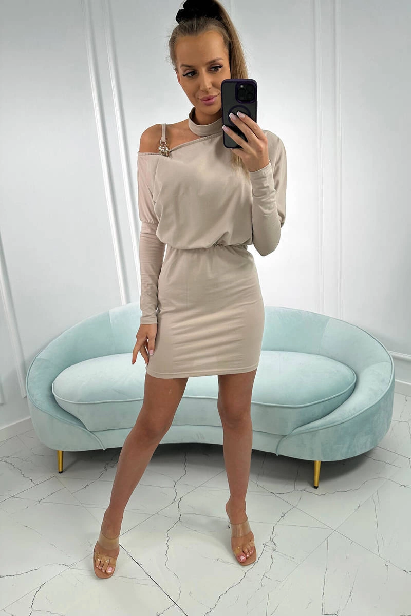 We present you a fashionable dress. The dress has a decoration on the shoulder. Dress with sewn-in elastic at the waist. The dress is made of high-quality material. The size is universal and will be suitable for ladies wearing size S, M or L.