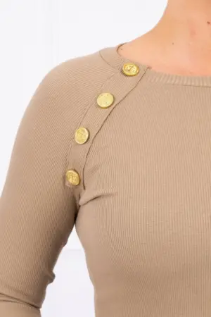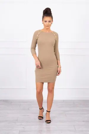 We present you a fashionable dress. Fitted dress, has two rows of decorative buttons on the front. Ribbed, stretchy material. A perfect proposition for all ladies. The dress is made of high quality material. The size is universal and will be suitable for ladies wearing sizes S, M or L.