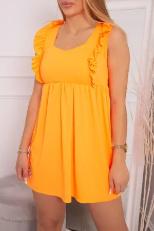 We present you a fashionable dress. The dress has flounces on the sides. Dress with elastic waist. The dress is made of high quality material. The size is universal and will be suitable for ladies wearing sizes S, M or L.