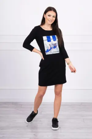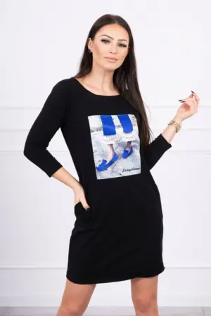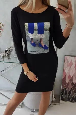 We present you a fashionable dress. The dress has pockets. Dress with graphics. An ideal position every day. The dress is made of high quality material. The size is universal and will be suitable for ladies wearing sizes S, M or L.
