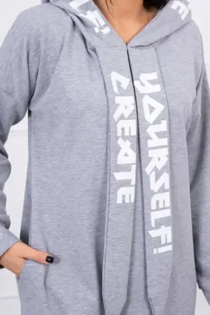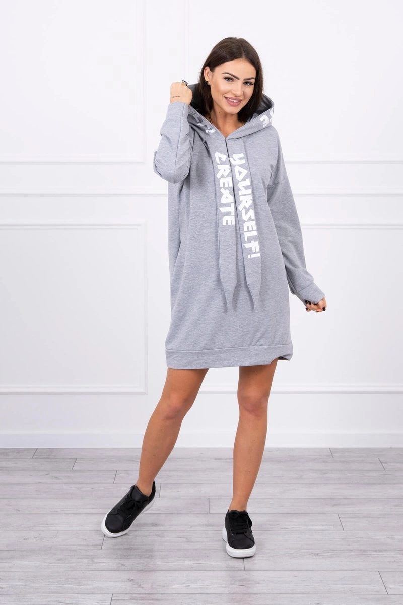 We present you a fashionable dress. The dress has a hood. The dress has a print on the hood and on the front sashes. An ideal position every day. The dress is made of high quality material. The size is universal and will be suitable for women wearing sizes M, L or XL