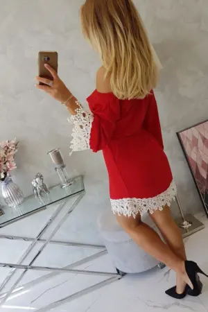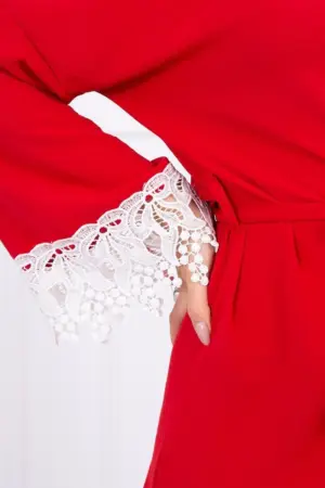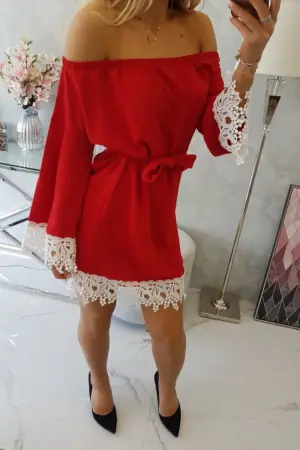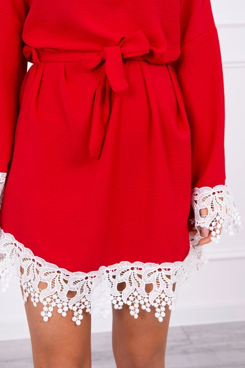 We present you a fashionable and elegant dress. Bottom of the dress and sleeves are finished with lace. The model has a tie at the waist. This model will be perfect for each of the ladies. The dress is made of high quality material. The size is universal and will be suitable for women wearing sizes M, L or XL.