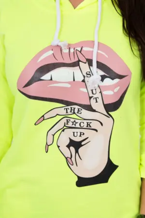 We present you a comfortable dress. Hooded dress, has a fashionable colorful print. Dress with a longer back. Very interesting proposition for all ladies. The dress is made of high quality material. The size is universal and will be suitable for ladies wearing sizes S, M or L.