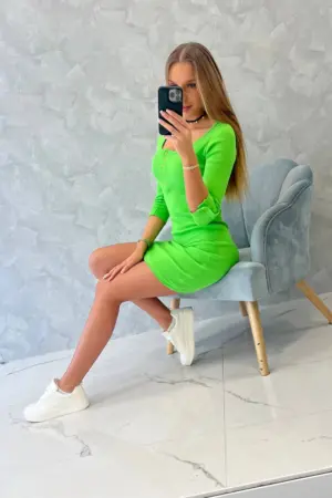 We present you a fashionable dress. The dress has a buttoned neckline. Button fastening. A perfect proposition for all ladies. Fitted dress which will emphasize the figure. The dress is made of high quality material. The size is universal and will be suitable for ladies wearing sizes S, M or L.