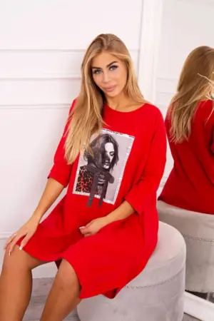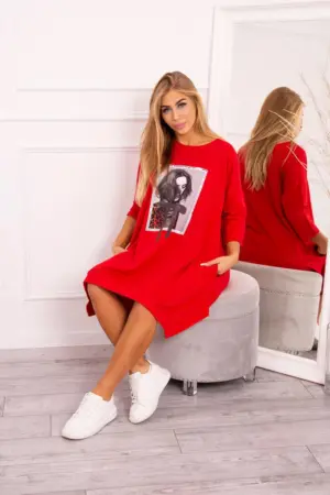 We present you a fashionable dress with print. The dress has a flared bottom. A great proposition for all ladies. The dress is made of high quality material.?The size is universal and will be suitable for ladies wearing sizes S, M or L.