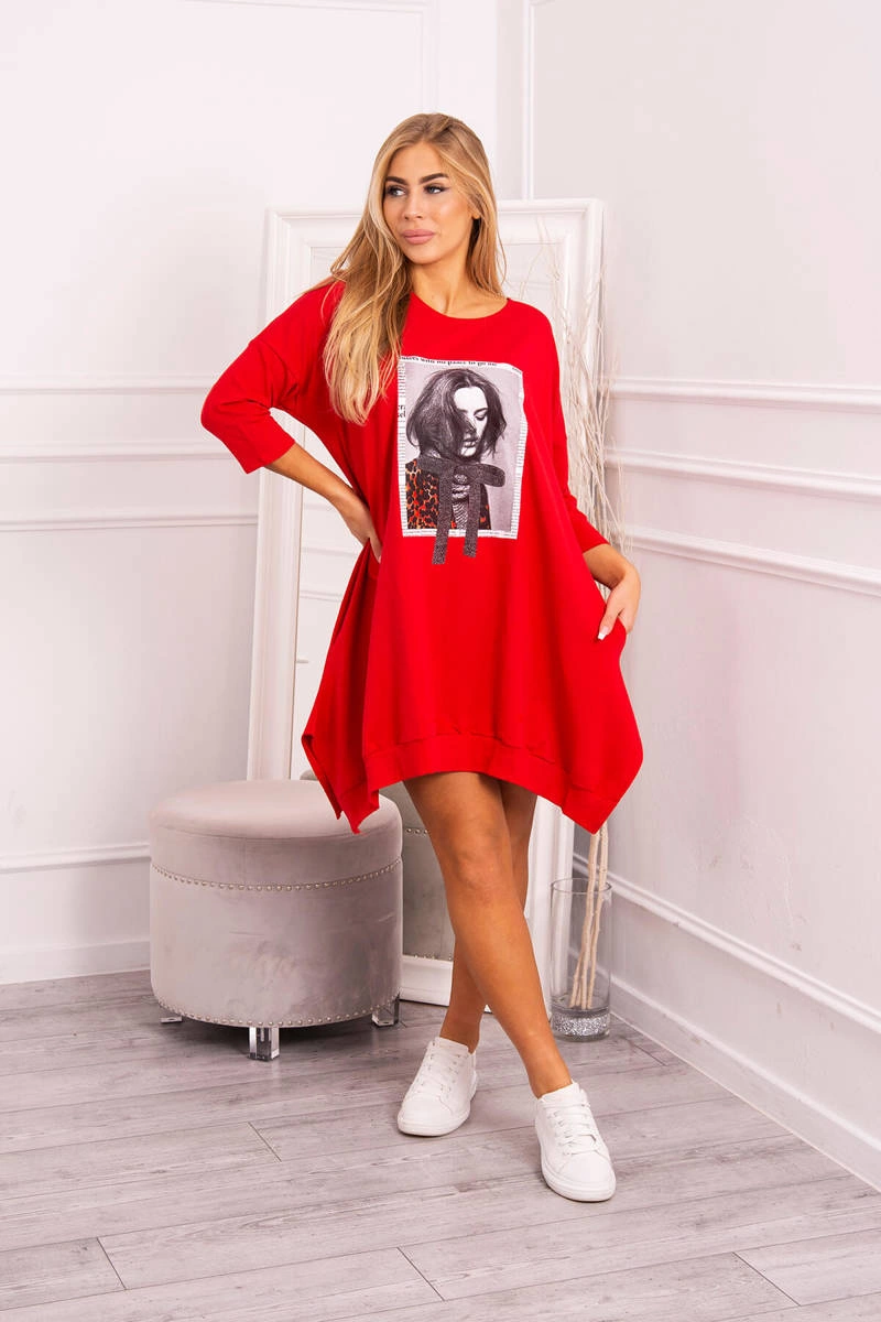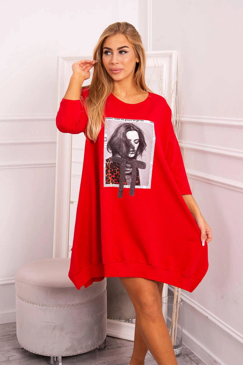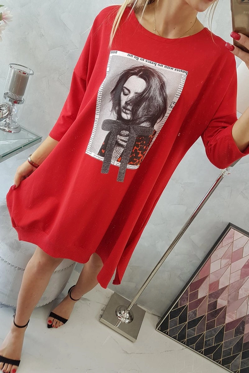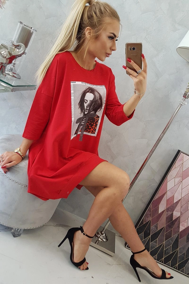 We present you a fashionable dress with print. The dress has a flared bottom. A great proposition for all ladies. The dress is made of high quality material.?The size is universal and will be suitable for ladies wearing sizes S, M or L.