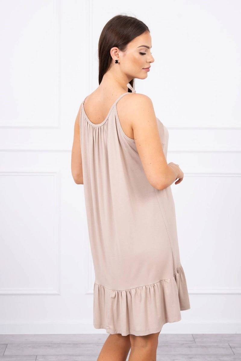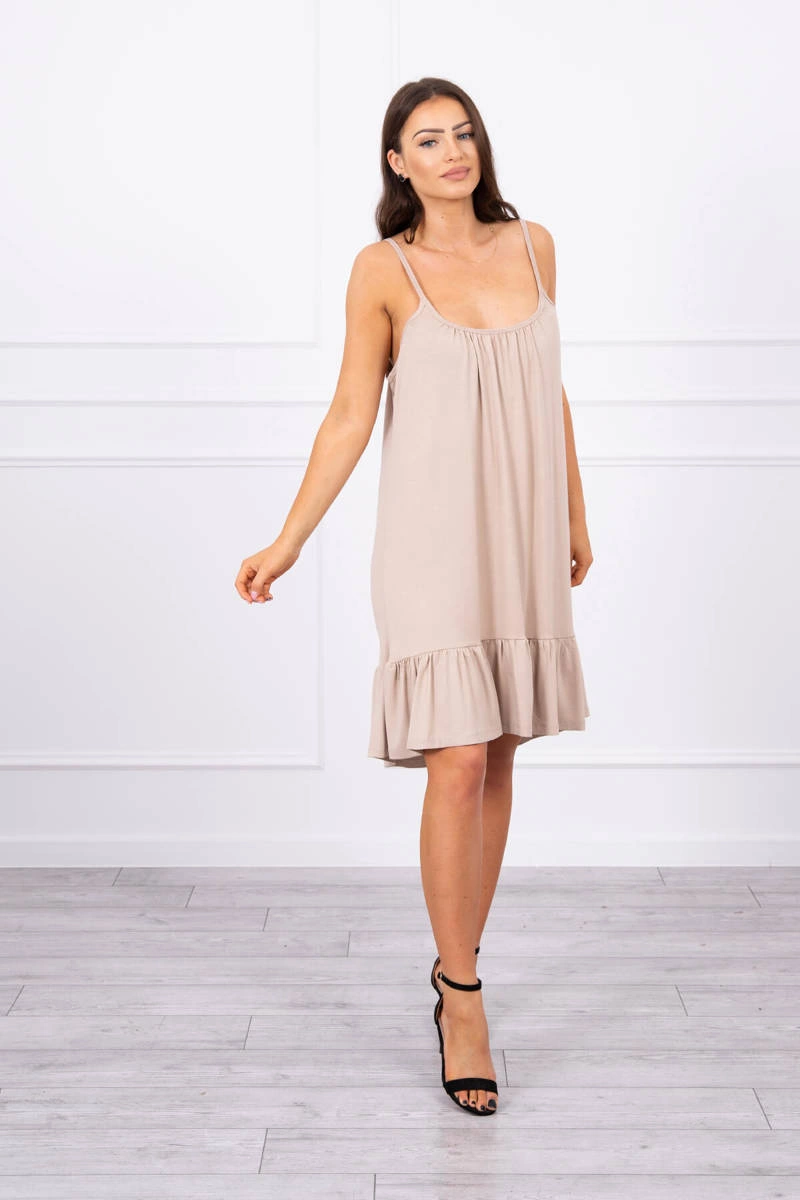 We present you a fashionable dress. Dress with thin straps, which can be shortened by tying. The dress at the bottom has a frill. The dress is made of high quality material. The size is universal and will be suitable for ladies wearing sizes S, M or L.