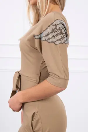 We present you a fashionable dress with decorative wings on the shoulders. Dress with a V-neck and a binding at the waist. The dress has pockets. A perfect proposition for all ladies. The dress is made of high quality material. The size is universal and will be suitable for ladies wearing sizes S, M or L.