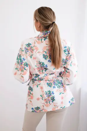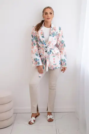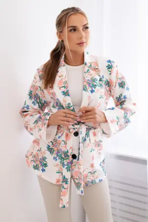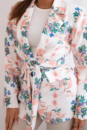 A jacket with a floral motif is a unique piece of clothing that adds a note of freshness and elegance to any styling. This charming floral motif gives the jacket lightness and delicacy, making it an ideal choice for spring and summer days when we want to emphasize our femininity and individual style. Made of high-quality materials, this jacket is not only comfortable to wear, but also looks great. You can wear it both for office styling and for meetings with friends or romantic dates. It is a great complement to both casual and more formal looks. A jacket with a floral motif is not only a wardrobe element, but also an expression of personality and individual taste. By adding it to your collection, you add delicate charm and freshness to every styling. The size is universal and will be suitable for women in sizes S, M, L.