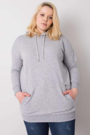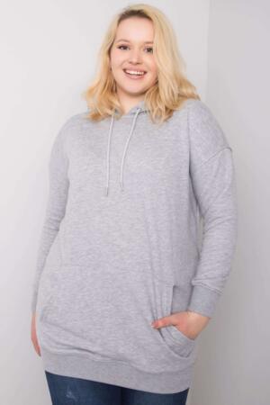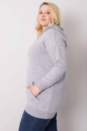 Γκρι βαμβακερό φούτερ plus size με κουκούλα. Φούτερ σε εκτεταμένο κόψιμο με τσέπες.
