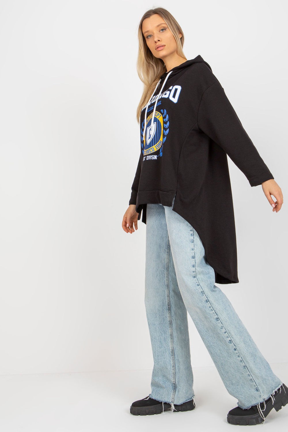Γυναικείο φούτερ με χαλαρό ασύμμετρο κόψιμο, μακριά μανίκια και κουκούλα.
