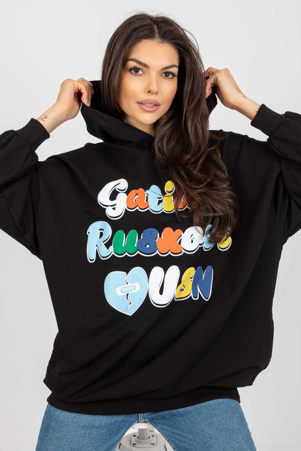 Γυναικείο φούτερ σε ίσια γραμμή με μακριά μανίκια και κουκούλα. Τσέπες στα πλάγια. Διακοσμητική επιγραφή στο μπροστινό μέρος.