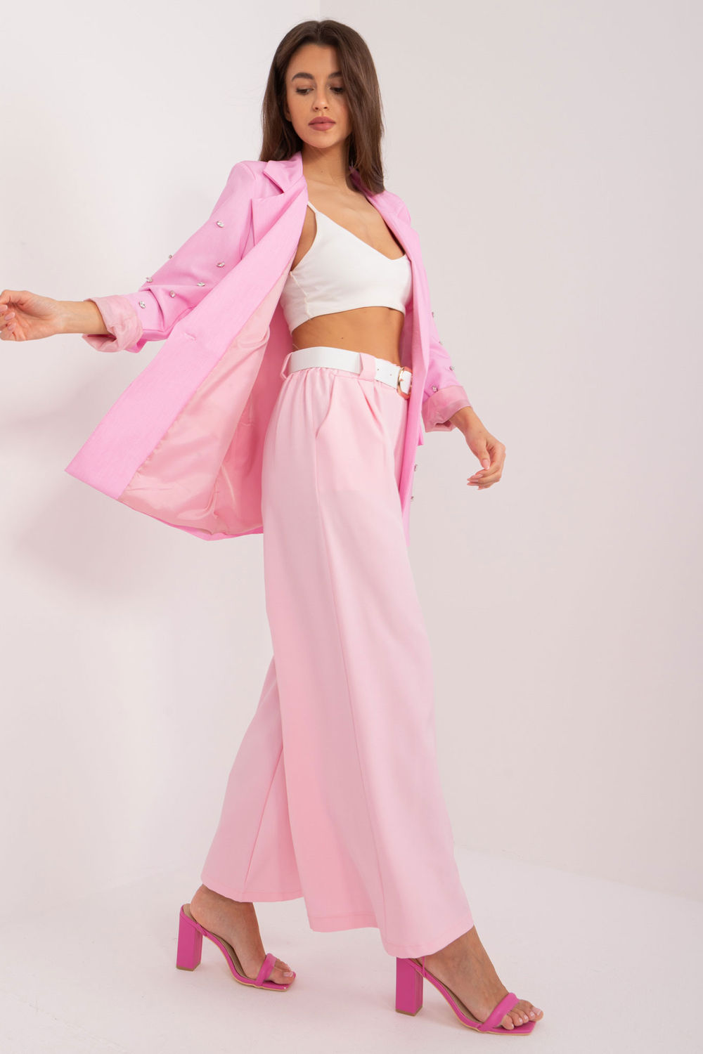 Το γυναικείο παντελόνι palazzo είναι η ουσία της κομψότητας και της άνεσης, ιδανικό για διάφορες περιστάσεις, από καθημερινές συναντήσεις έως επίσημες εξόδους ή εκδηλώσεις. Είναι κατασκευασμένο από λείο ύφασμα από πολυεστέρα, που εξασφαλίζει υψηλή άνεση στη χρήση και ανθεκτικότητα. Η ψηλή μέση κάνει το παντελόνι να εφαρμόζει τέλεια στη σιλουέτα, τονίζοντας τις αναλογίες της και προσδίδοντας θηλυκή κομψότητα. Τα φαρδιά πόδια του προσδίδουν χαρακτήρα, τονίζοντας τη λεπτότητα και την ελαφρότητα του styling. Οι πρακτικές πλαϊνές ολισθαίνουσες τσέπες παρέχουν άνετη αποθήκευση για μικρά αντικείμενα, καθιστώντας αυτό το παντελόνι τόσο κομψό όσο και λειτουργικό. Επιπλέον, το παντελόνι διαθέτει ελαστική μέση και ζώνη με αγκράφα για ανάλαφρη πινελιά και επιπλέον γοητεία. Χάρη στον ευέλικτο χαρακτήρα του, αυτό το παντελόνι παλάτσο θα είναι ιδανικό για διάφορες καταστάσεις, από τις καθημερινές δουλειές μέχρι τις ημέρες στη δουλειά και τις βραδινές συναντήσεις ή εκδηλώσεις. Το κομψό τους στυλ και η εξαιρετική τους άνεση θα το κάνουν αγαπημένο στην γκαρνταρόμπα κάθε γυναίκας.