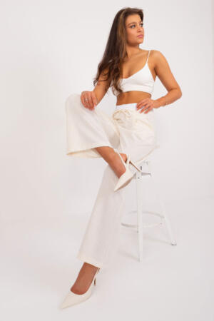 Αυτό το κομψό παντελόνι παλάτσο είναι η τέλεια επιλογή για διάφορες περιστάσεις, από καθημερινές καταστάσεις μέχρι επίσημες εκδηλώσεις ή βραδινά πάρτι. Ο κομψός σχεδιασμός και το υψηλής ποιότητας υλικό τους τα καθιστούν αξιόπιστη βάση για μια μεγάλη ποικιλία εμφανίσεων. Κατασκευασμένο κυρίως από πολυεστέρα, αυτό το παντελόνι είναι εξαιρετικά ανθεκτικό και δεν τσαλακώνεται, γεγονός που το καθιστά ιδανικό για καθημερινή χρήση και για την περίοδο άνοιξη/καλοκαίρι. Το υλικό με τις λεπτές ρίγες προσθέτει ελαφρότητα και διακριτικότητα, καθιστώντας το κατάλληλο για ποικίλες περιστάσεις. Το ψηλό τους ύψος τονίζει τη μέση και προσθέτει κομψότητα στη συνολική σιλουέτα. Τα φαρδιά πόδια σε στυλ παλάτσο τούς προσδίδουν πολυτελή αίσθηση και ελευθερία κινήσεων, καθιστώντας τους μια άνετη επιλογή για μεγάλες μέρες στη δουλειά ή βραδινές εξόδους. Το μπροστινό μέρος του παντελονιού διαθέτει διακοσμητικά βελάκια που προσδίδουν πρωτοτυπία και μια μοναδική πινελιά. Επιπλέον, το παντελόνι διαθέτει συρόμενες πλαϊνές τσέπες, η οποία αποτελεί μια πρακτική προσθήκη στο συνολικό σχεδιασμό. Το παντελόνι παλάτσο που δένει στη μέση σας επιτρέπει να ρυθμίζετε την εφαρμογή, κάνοντάς το να ταιριάζει τέλεια σε κάθε σιλουέτα. Αφήστε αυτό το παντελόνι να γίνει αναπόσπαστο κομμάτι της γκαρνταρόμπας σας, προσθέτοντας μια κομψή και κομψή πινελιά σε κάθε σας ντύσιμο, ανεξαρτήτως περίστασης.