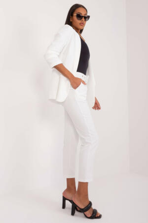 Κομψότατο τσίνος παντελόνι κατασκευασμένο από λείο ύφασμα υποκυριαρχούμενο από πολυεστέρα. Είναι ιδανικό για διάφορες περιστάσεις, τόσο για καθημερινή χρήση, εργασία όσο και για πιο επίσημες επισκέψεις. Λόγω του υψηλού καβάλου παρέχουν άνεση και κομψή εμφάνιση. Οι απλές πατούσες προσθέτουν κλασικό χαρακτήρα, ενώ το κλείσιμο με φερμουάρ και κουμπί εξασφαλίζει άνεση στη χρήση. Επιπλέον, διαθέτει ζωνάκι με κούμπωμα και πρακτικές τσέπες εισαγωγής, καθιστώντας το όχι μόνο κομψό, αλλά και λειτουργικό κομμάτι γκαρνταρόμπας.