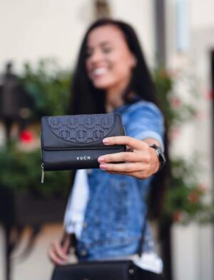 „Elegance, originality and precise workmanship are all associated with the black wallet, which thatnks to its design belongs to the unmissable accessories. Succumb to her magic.“