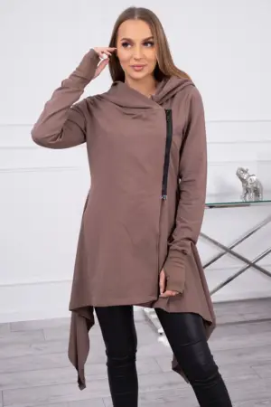 We present you a comfortable sweatshirt. The sweatshirt has a side zipper and longer sides. The sweatshirt is made of high quality material. The size is universal and will be suitable for ladies wearing sizes M, L or XL.